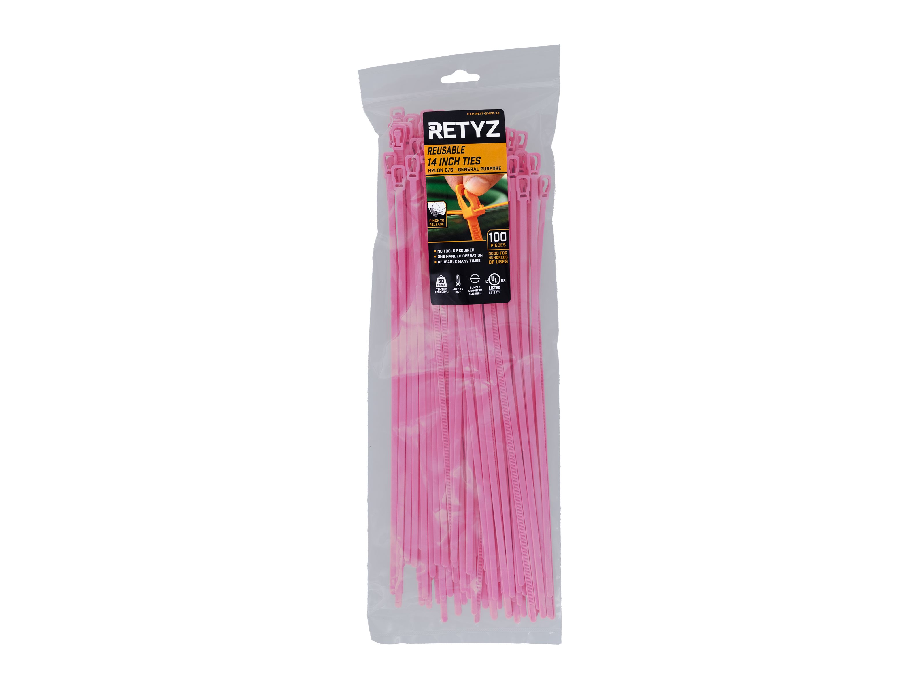EveryTie 14 Inch Fluorescent Pink Reusable Tie -100 Pack