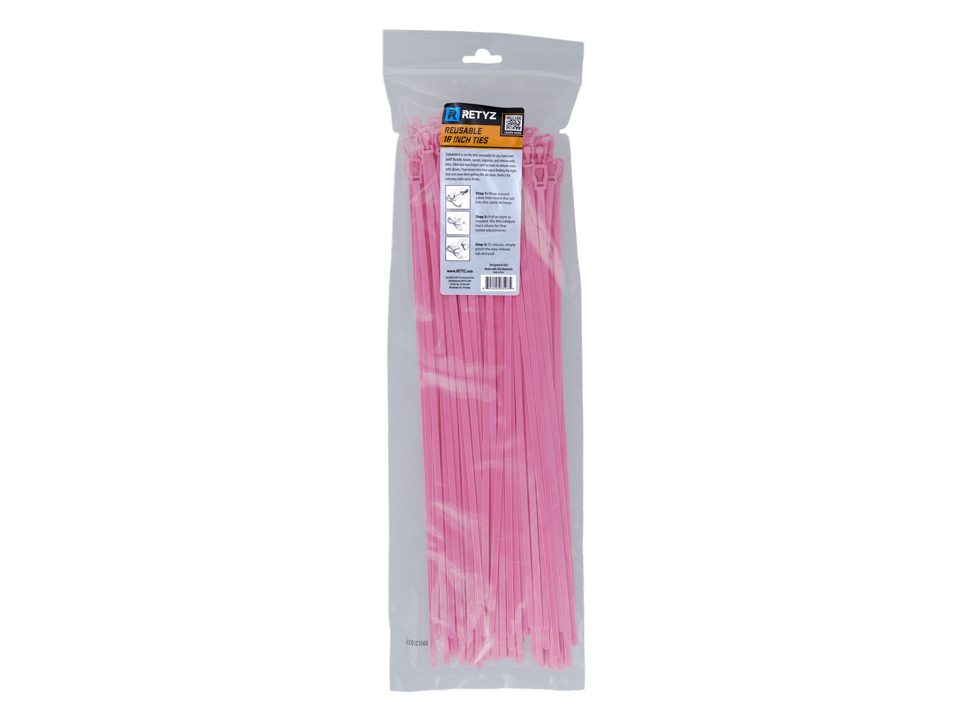 EveryTie 16 Inch Fluorescent Pink Reusable Tie - 100 Pack