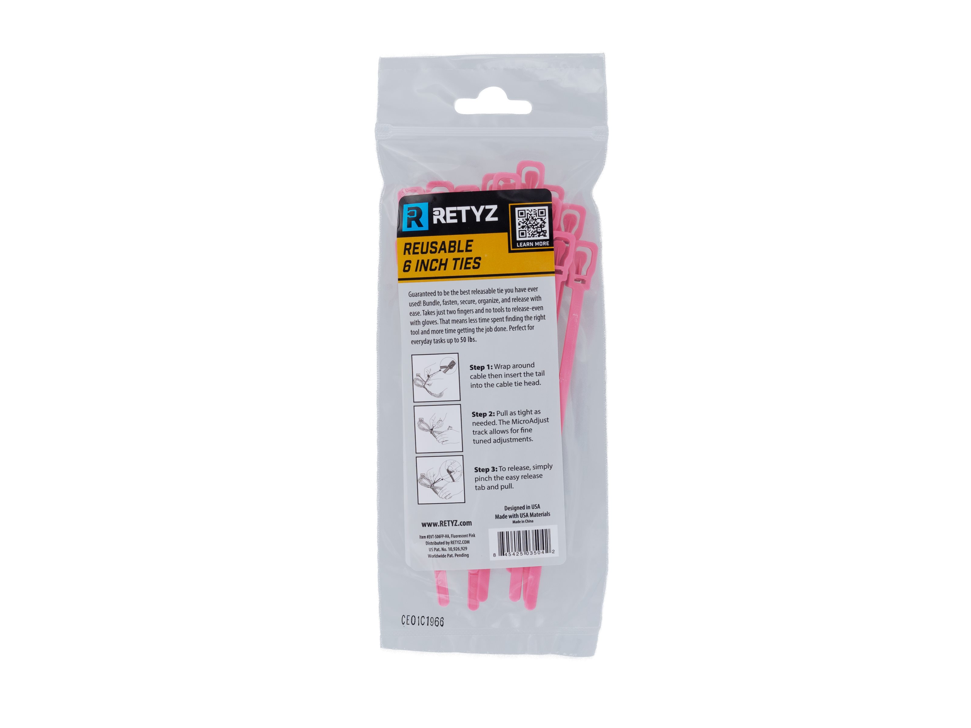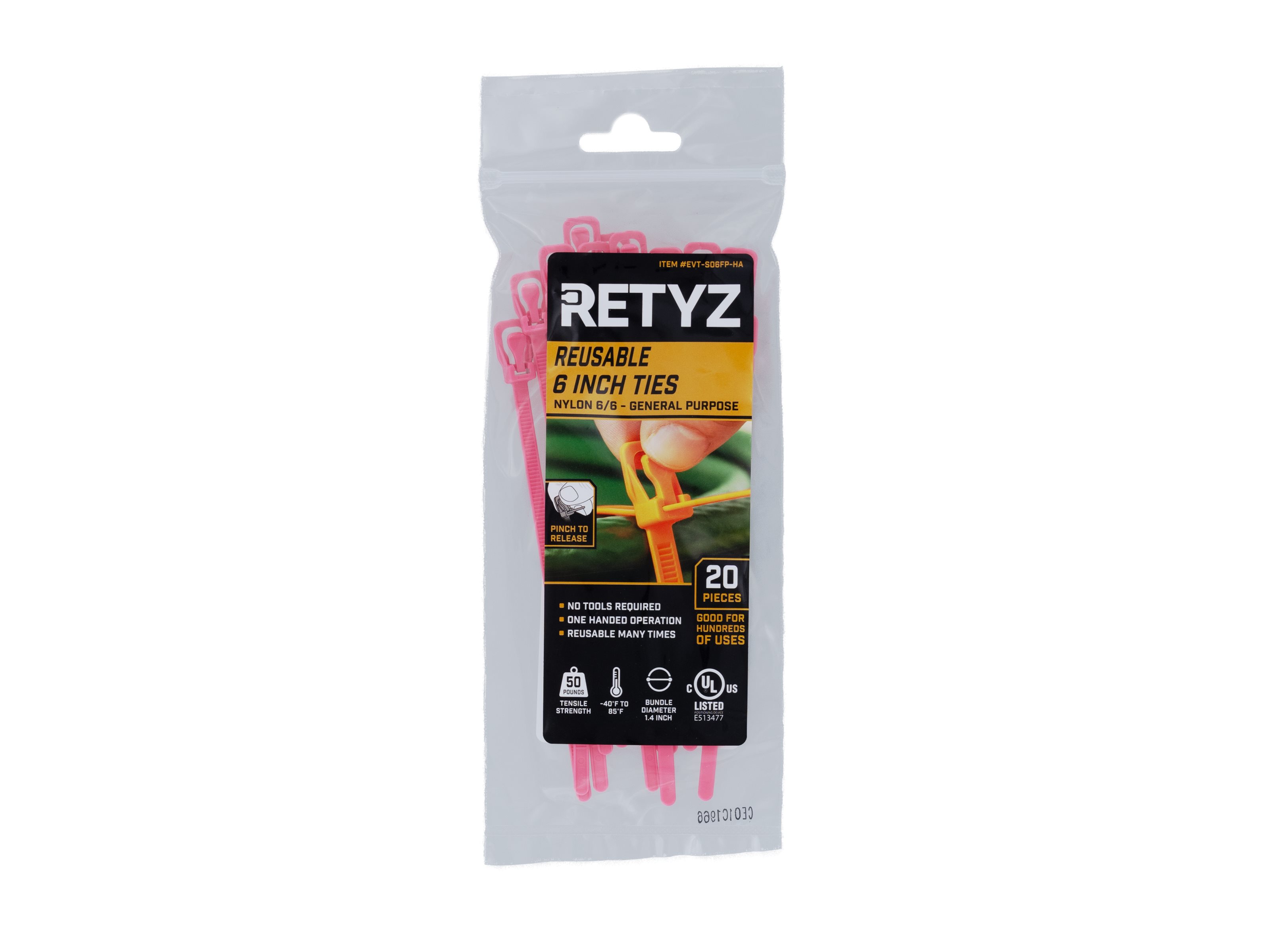 RETYZ™ EveryTie in fluorescent colors delivers heavy-duty strength with high-impact visibility. Each tie is UV reactive, glowing under blacklight to stand out in dark or dynamic environments.
