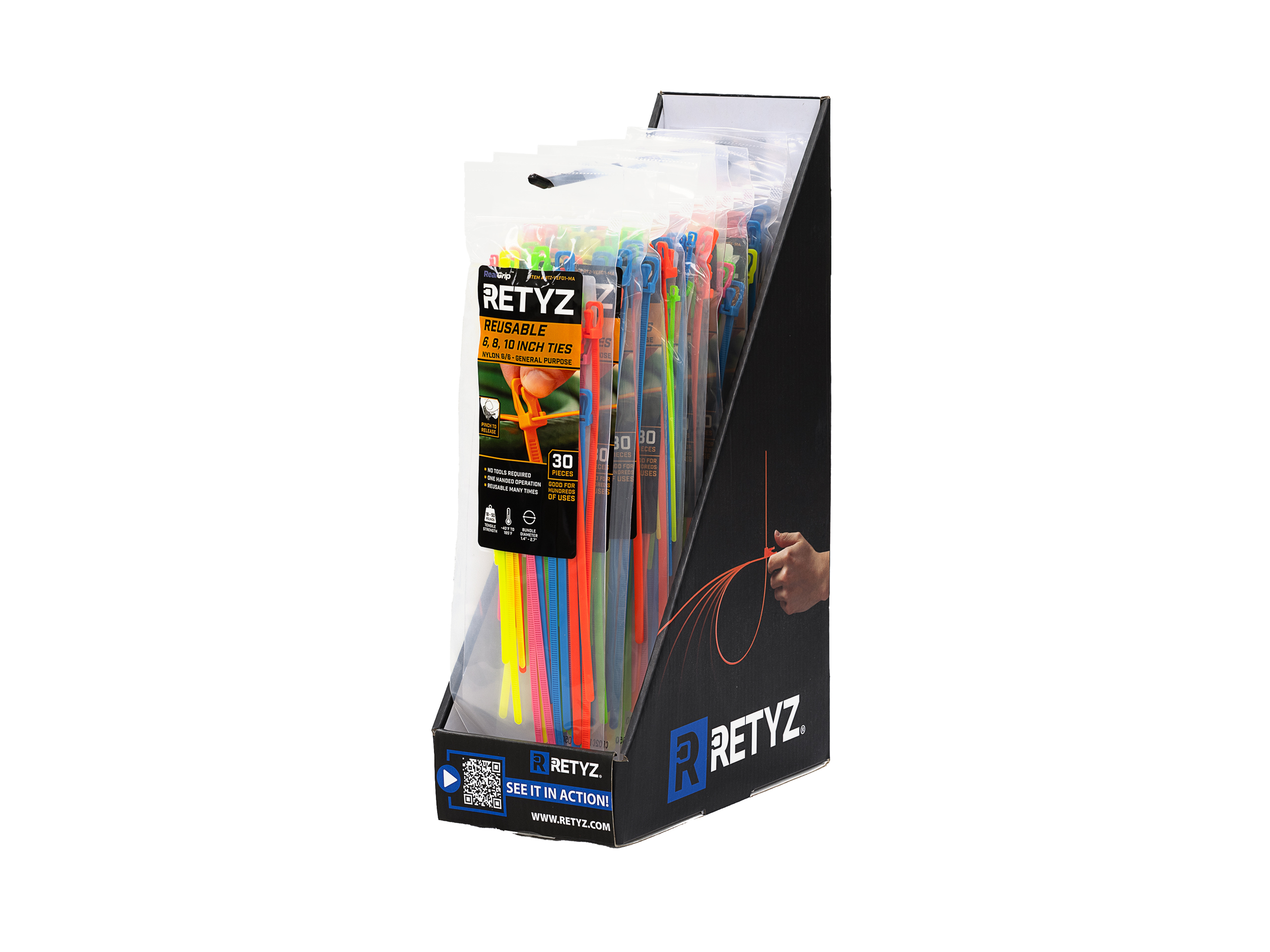 Display: 6 Inch Mini, 8 Inch, and 10 Inch 5-Color Neon Variety Pack Reusable Tie - 30 Pcs - RTZ-VEF01-MA - 10 Packs