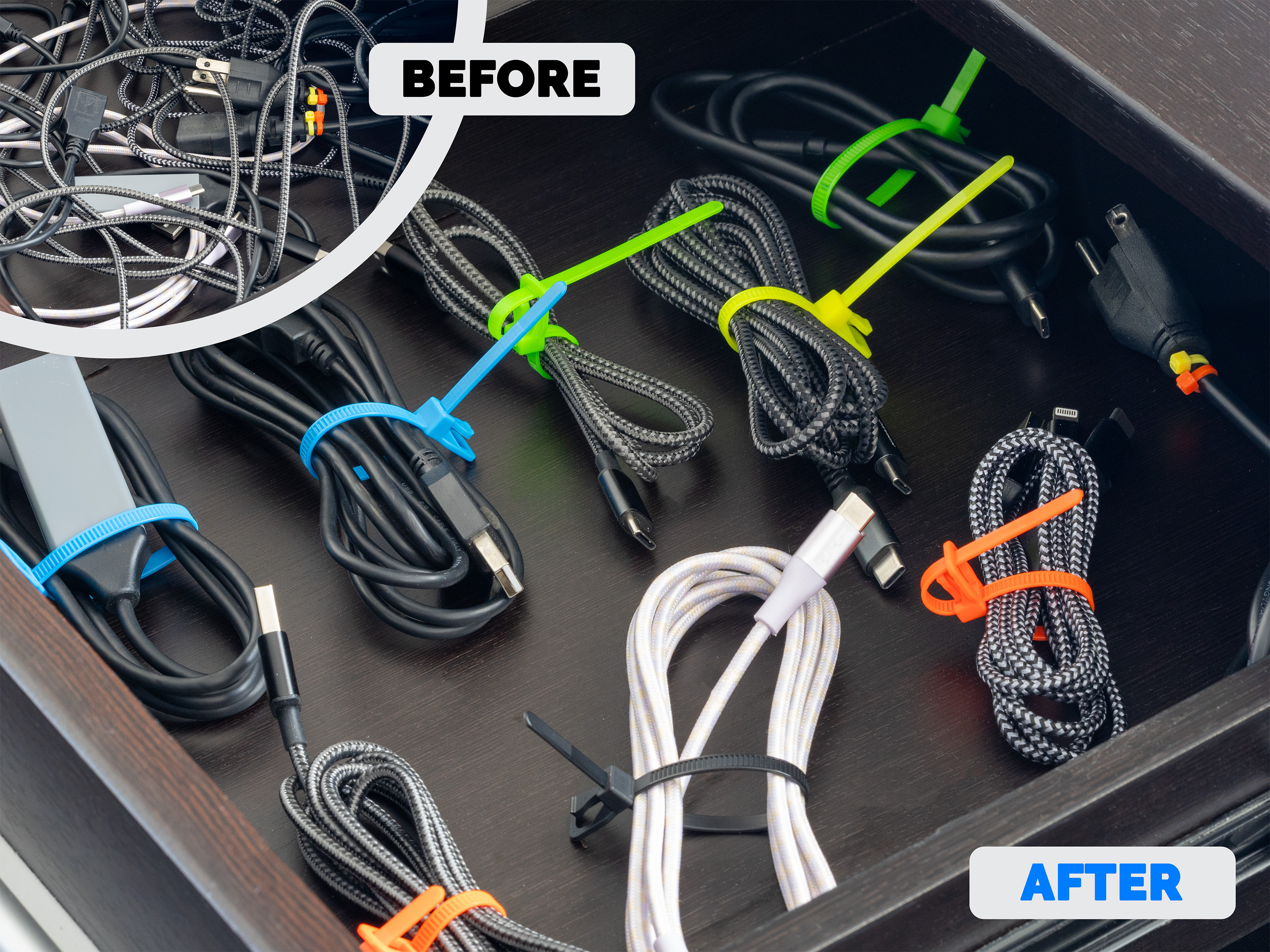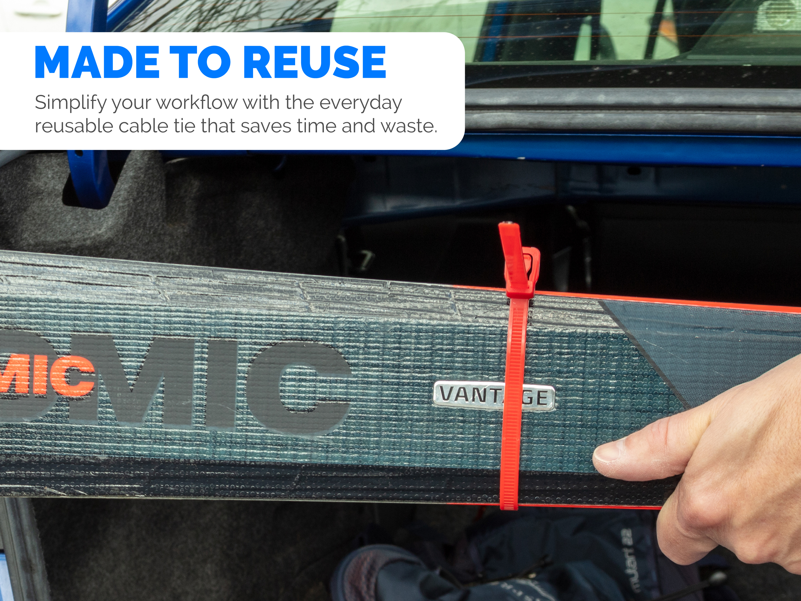 The RETYZ™ EveryTie in standard colors brings serious strength and convenience to your workspace. With a 50 lb tensile rating and a fully reusable design, these ties are perfect for organizing by color without sacrificing durability.