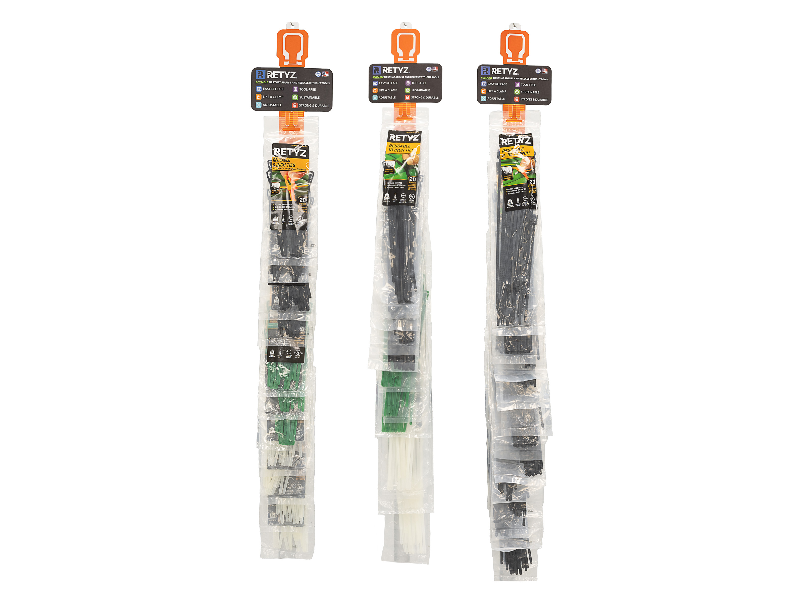 Strip 3: EveryTie™ 8", 10", 12" Reusable Cable Tie Variety Pack – 30 Pack (Black, 50 lb) - 12 Packs
