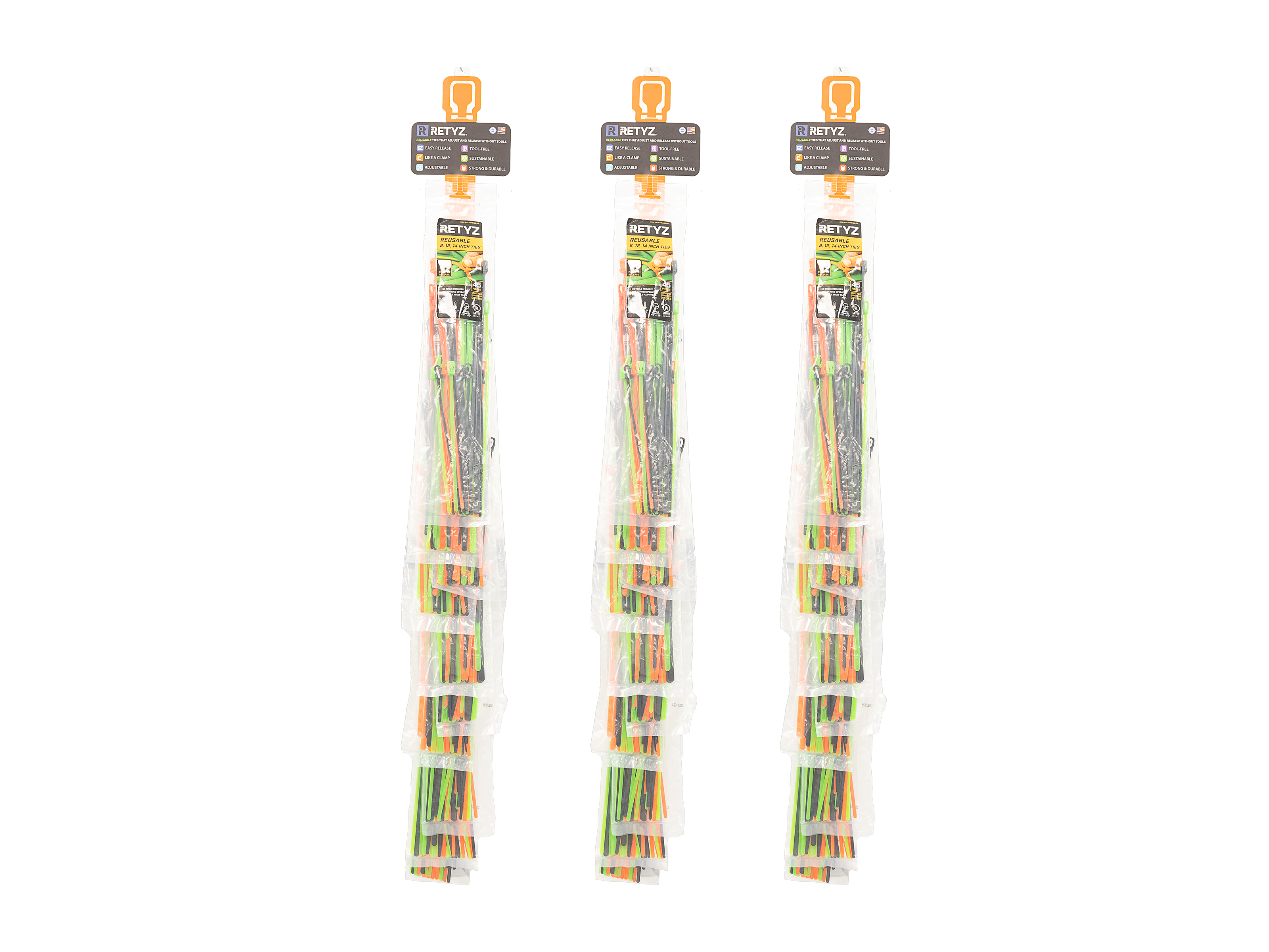 Strip 3: EveryTie 8, 12, 14 Inch MultiPack Reusable Tie - 45 Pack - RTZ-MBA02-OA - 10 Packs
