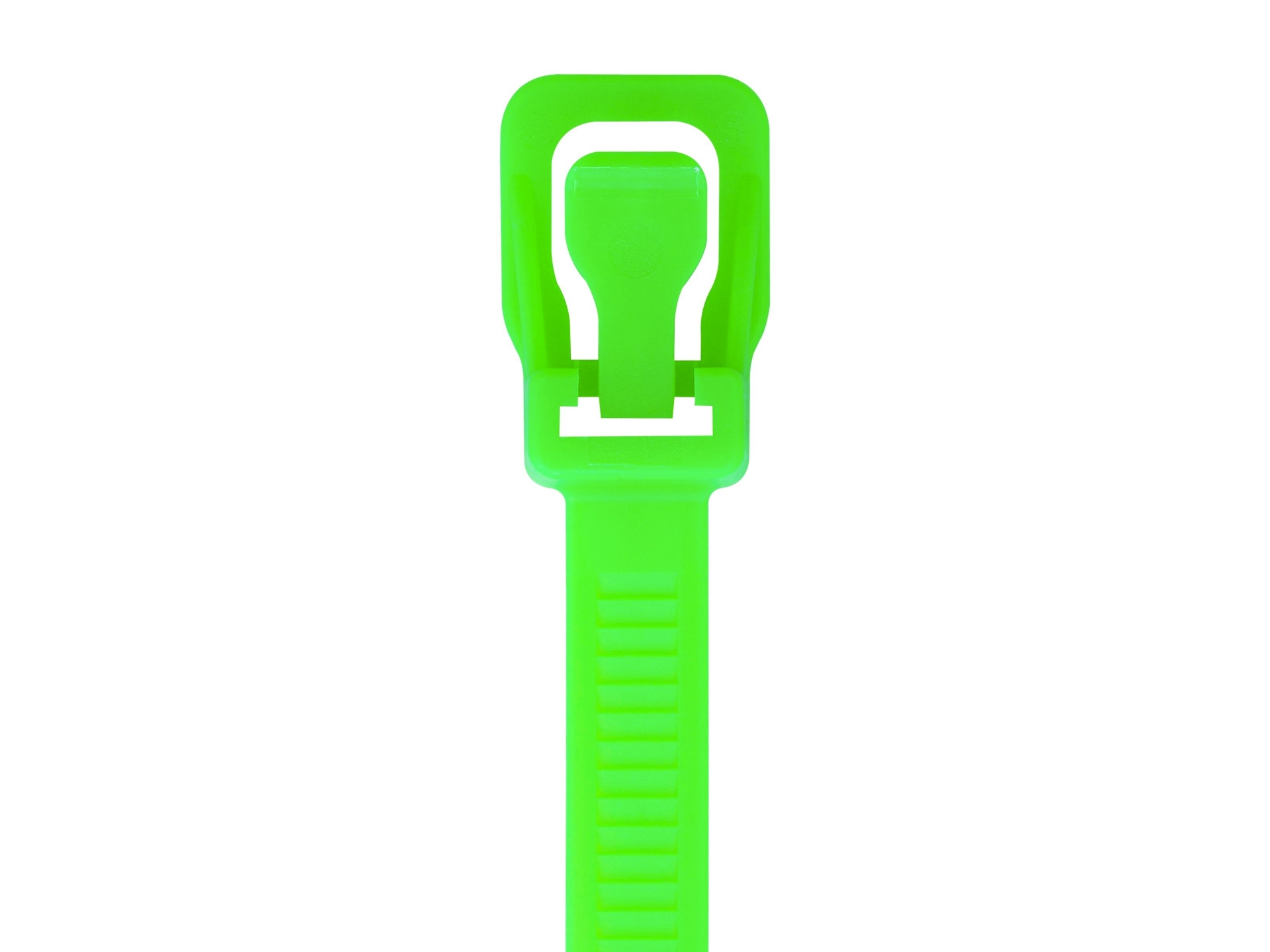 The patented head design allows you to release and reuse the tie without tools, even on tightly secured bundles.