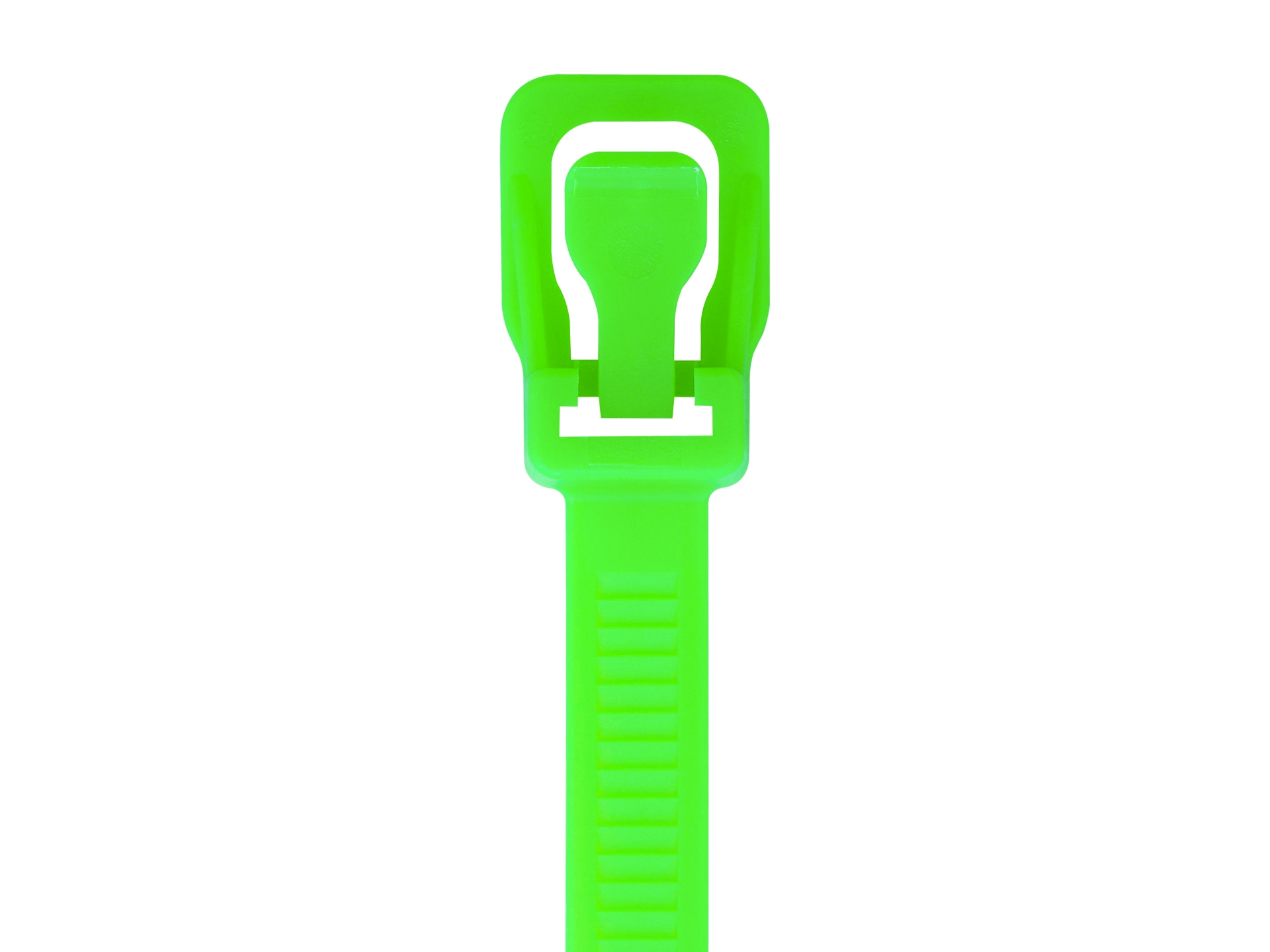The patented head design allows you to release and reuse the tie without tools, even on tightly secured bundles.