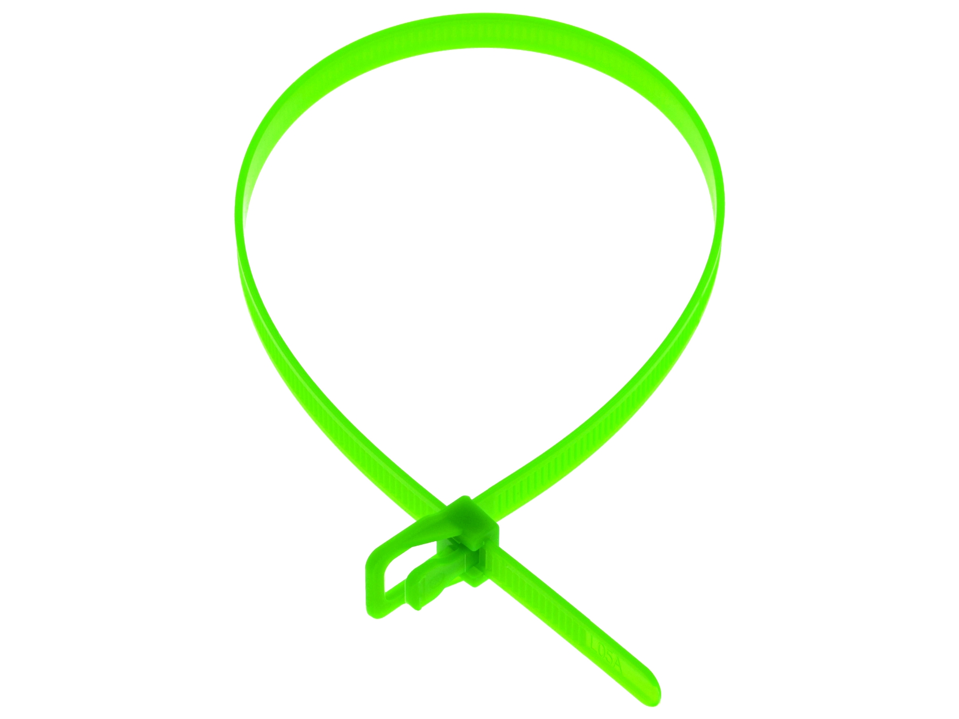 RETYZ™ WorkTie in fluorescent colors offers a 120 lb tensile rating and UV reactive visibility under blacklight. These ties are perfect for staging, event work, and high-load setups that need to stand out and stay secure.